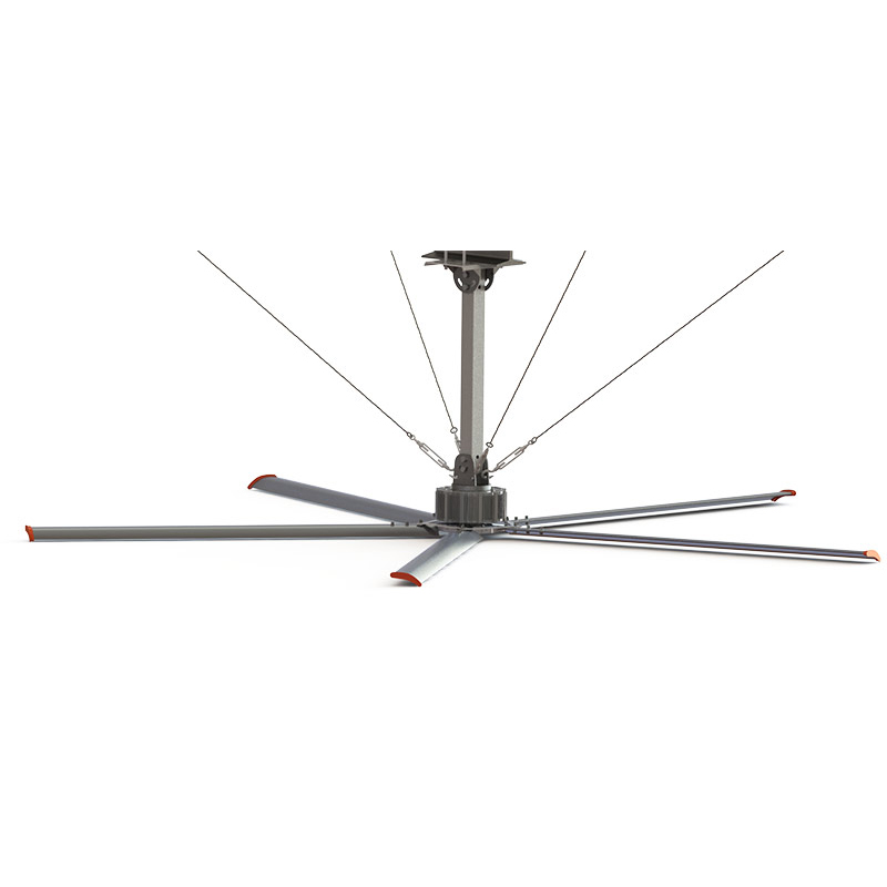 工業大風扇的主要作用將室內空氣大量全面攪動形成風速,產生5-8級的自然風效果,在高大空間內創造自然風而使人體降溫,帶來清涼的感受,提商空氣流通效率提高空氣中的含氧量從而提高工作效率。